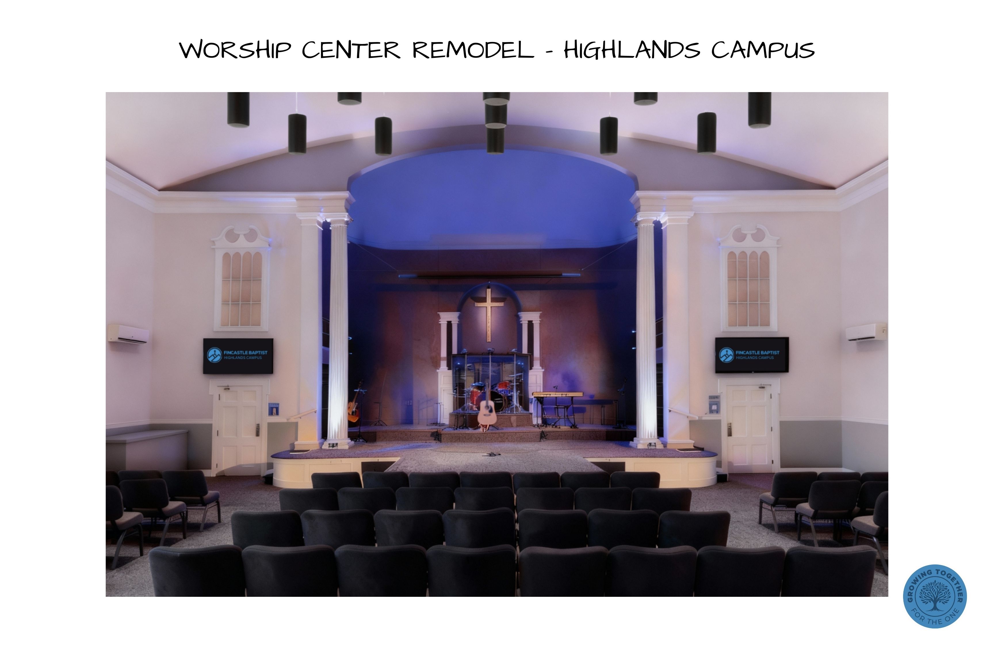 If fully funded, the Growing Together for the One campaign at the Fincastle Campus will provide a parking lot expansion as well as the construction of a new Student Center. This Student Center will be constructed so that one day it can be expanded into a new Worship Center. At the Highlands Campus, this campaign will provide new windows and doors, handicap access, and a worship center renovation. At the Rockbridge Campus, this campaign will begin a building and land fun for an eventual campus relocation as well as double the kids and students’ spaces.